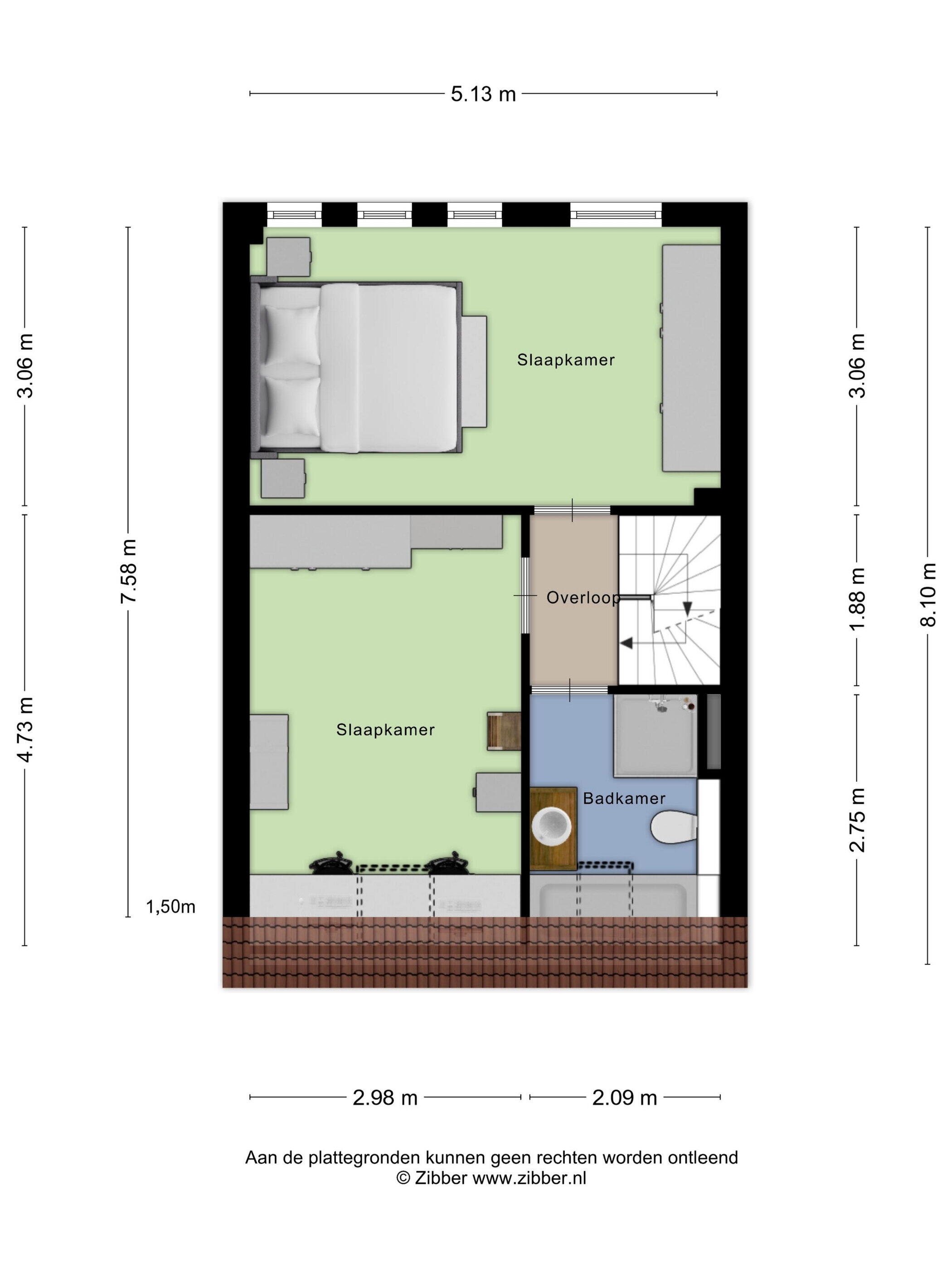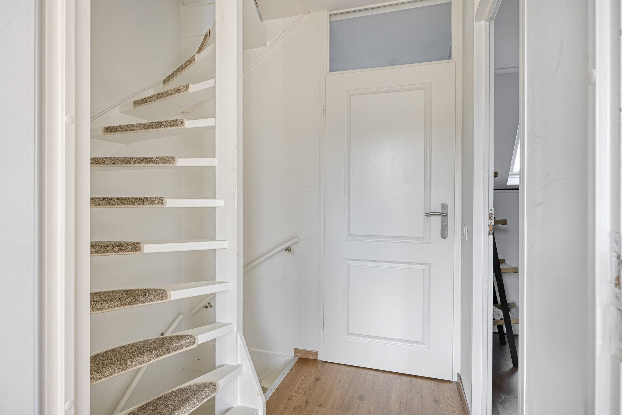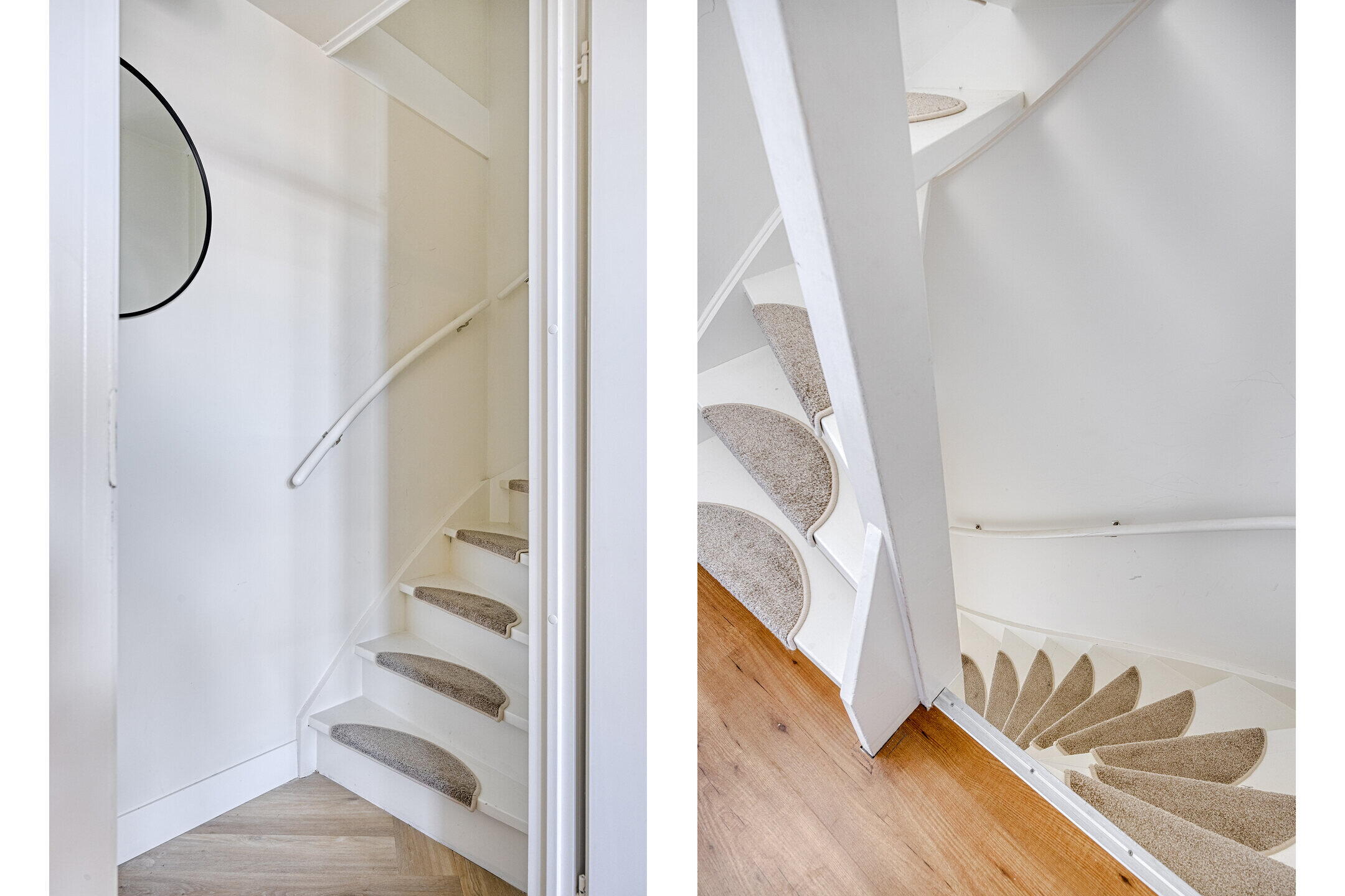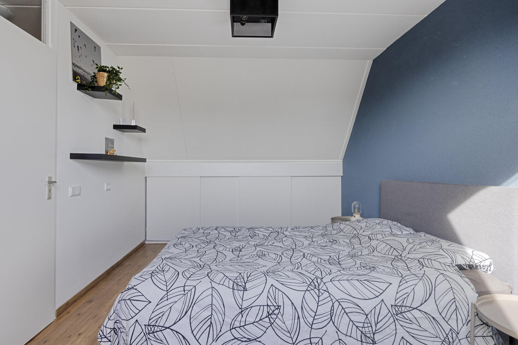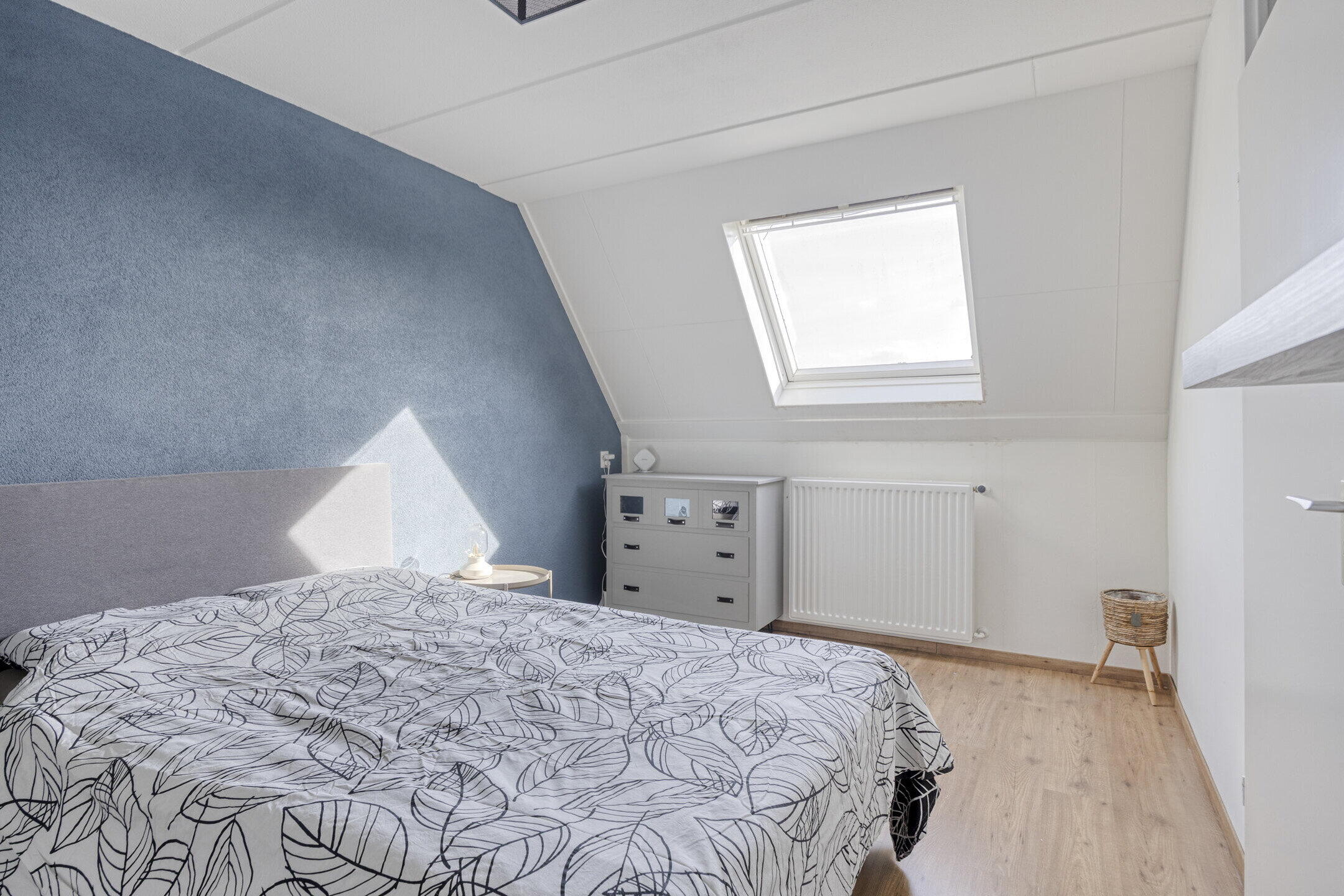 De tweede verdieping beschikt over een praktische overloop met aansluitingen voor wasmachine en de cv-ketel, evenals bergruimte achter de knieschotten. Hier vind je ook de derde slaapkamer: een ruime kamer met dakraam en volop opbergruimte.
